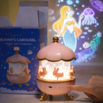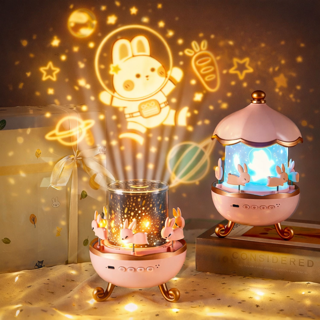 Create a magical bedtime atmosphere with the Bunny Carousel Night Light Projector, a beautiful combination of soft lighting and dreamy projections designed to comfort and delight children at night.
