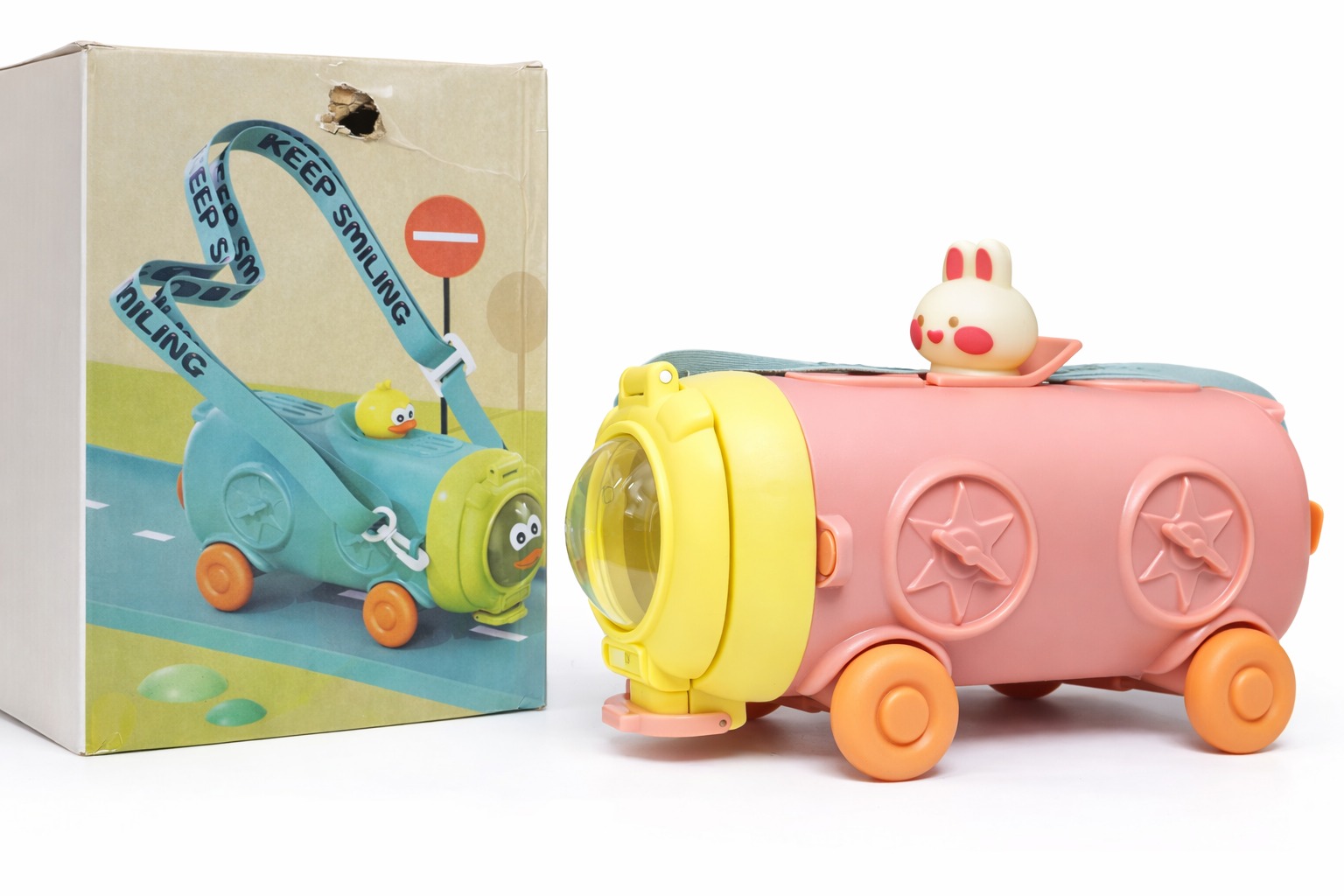 Cute and colourful kids ride-on toy designed like a cartoon camera car. Equipped with smooth wheels and an easy pull strap, this toy encourages active play, imagination, and motor skill development. Safe rounded edges and durable build make it ideal for toddlers and young children.
