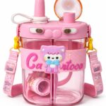 Cute and leak-proof kids water bottle with cartoon design and adjustable strap. Ideal for school, travel, and daily use.